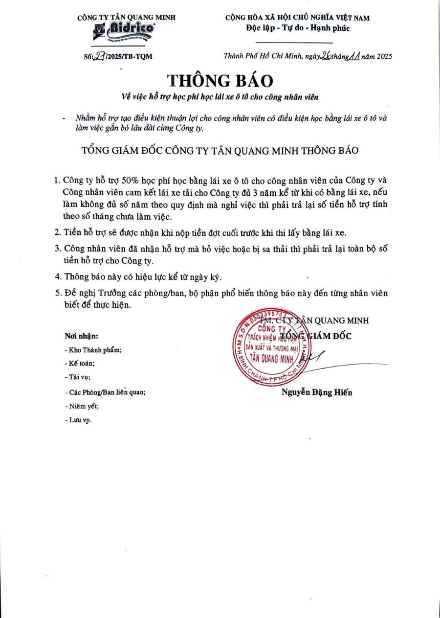 Để tạo điều kiện cho công nhân – nhân viên gắn bó và phát triển lâu dài, Bidrico chính thức triển khai chương trình hỗ trợ 50% học phí lấy bằng lái xe ô tô dành cho tất cả nhân viên đang làm việc tại công ty.