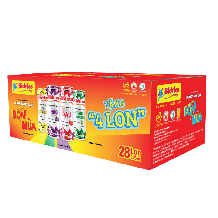Nước tăng lực Bidrico lon 325ml – Bốn mùa