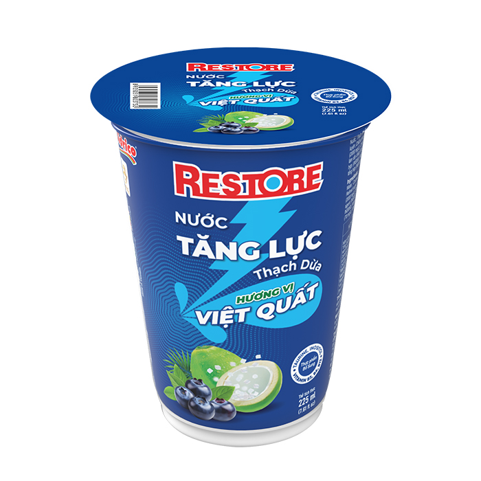 Với thiết kế nhỏ gọn, tiện lợi đựng trong ly 225ml giúp dễ dàng mang theo khi hoạt động ngoài trời. Cùng với hệ thống sản xuất an toàn và vệ sinh, nước tăng lực thạch dừa hương vị việt quất Restore tự tin mang đến cho khách hàng những trải nghiệm sản phẩm tốt và chất lượng.