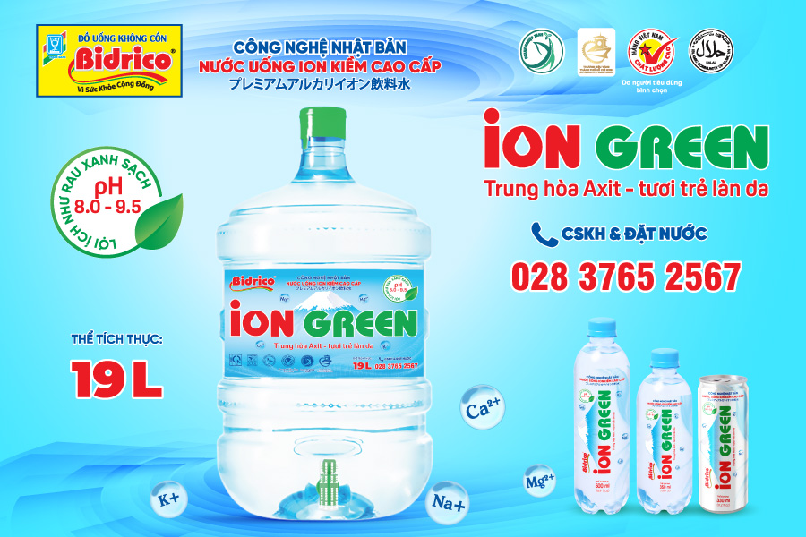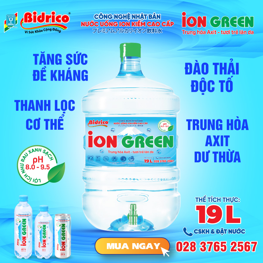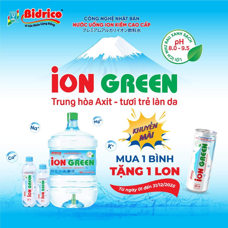 Thấu hiểu điều đó, Bidrico mong muốn đồng hành cùng bạn trên hành trình chăm sóc sức khỏe bằng một món quà đặc biệt. Từ ngày 01/12/2025 – 31/12/2025, Bidrico chính thức khởi động chương trình khuyến mãi hấp dẫn nhất trong năm dành riêng cho dòng sản phẩm nước ion kiềm cao cấp Ion Green: Mua 1 bình nước ion kiềm Ion Green 19L – Tặng ngay 1 lon Ion Green 330ml.